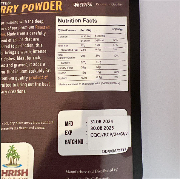 **Product Overview** CHIRISH curry powder is made from carefully selected spices, characterized by a deep flavor and rich aroma. It adds depth to your dishes and can be used in a variety of recipes. **Nutritional Information** The package contains nutritional information, making it ideal for health-conscious cooking. Please refer to the package for detailed nutritional information. **How to Use** It can be used in a wide range of dishes such as curries, soups, and marinades. It is recommended to add the spices at the end of cooking to enhance their fragrance. - Brand: CHIRISH - Product Name: Curry Powder - Nutritional Components: Listed - Manufacturing Date: August 31, 2024 - Expiration Date: August 30, 2025 Thank you for your interest.